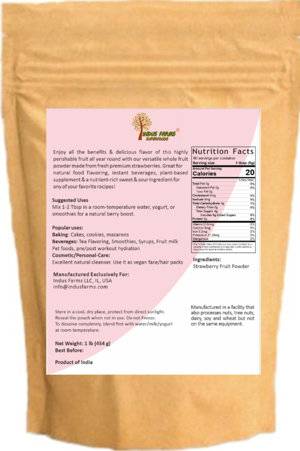 Indus Farms Superfoods Strawberry Fruit Powder, 100% Natural, GMO-Free, Gluten-Free, Vegan, No Refined Sugars